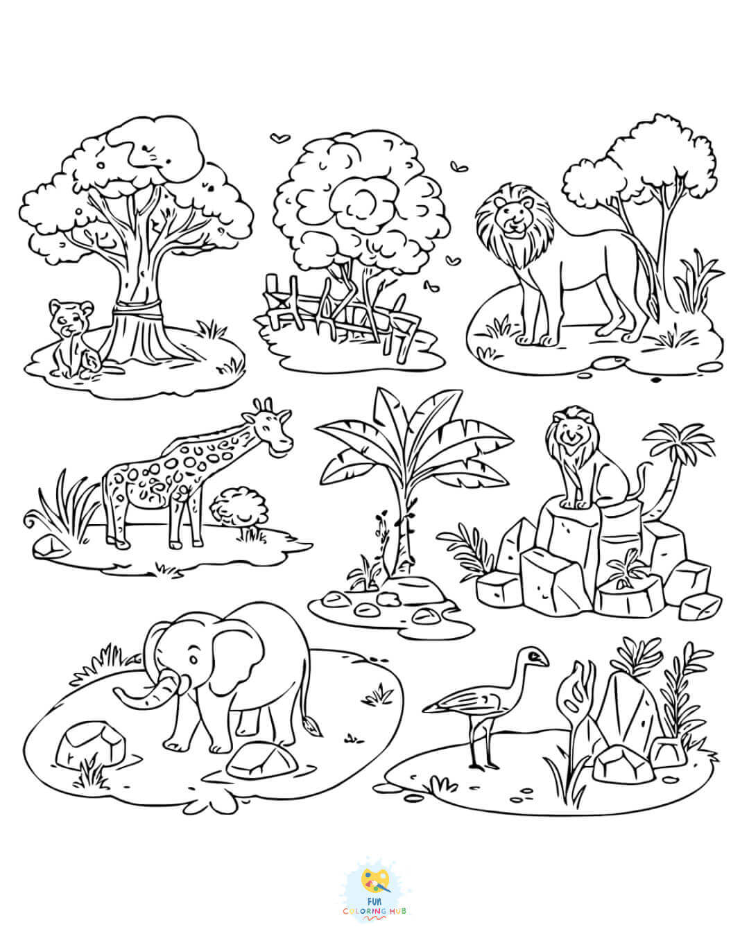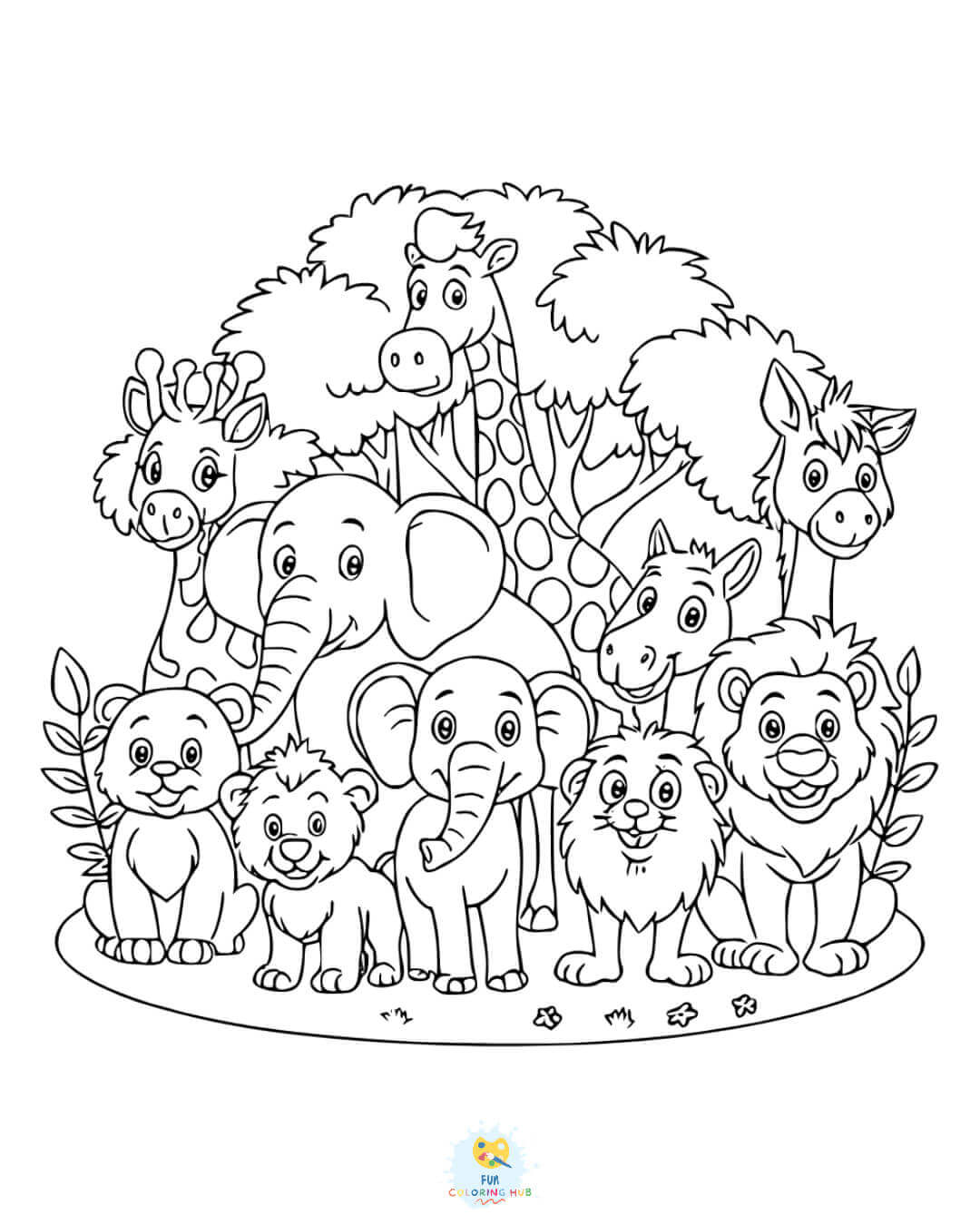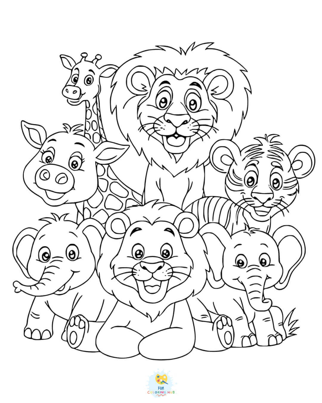 Print out the coloring pages of all the different animals featured in the collection. Next, cut out the heads of your favorite animals after coloring, punch holes at the top, and string them together. You can use it as a party bunting especially if you are hosting a wildlife-themed party.